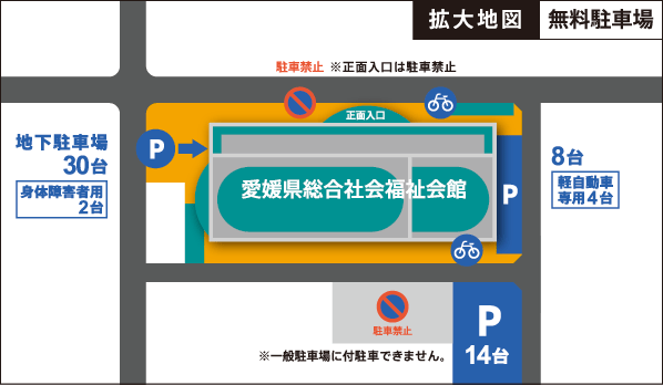 満車の場合は、各自で会館周辺の有料駐車場を利用してください。